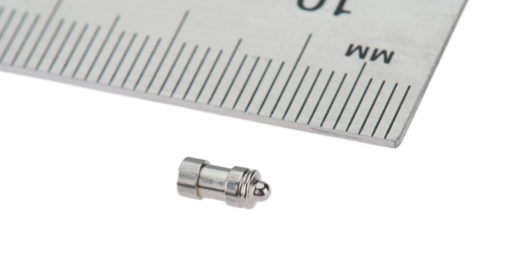 Goupilles de verrouillage pour boîtiers de poudre compacte ou coffrets de maquillage en grandes séries par frappe à froid multi-poste. Ces pièces nécessitent une résistance mécanique élevée, une absence de bavure et parfois un traitement anti-corrosion, afin de garantir une ouverture/fermeture fluide et durable.
